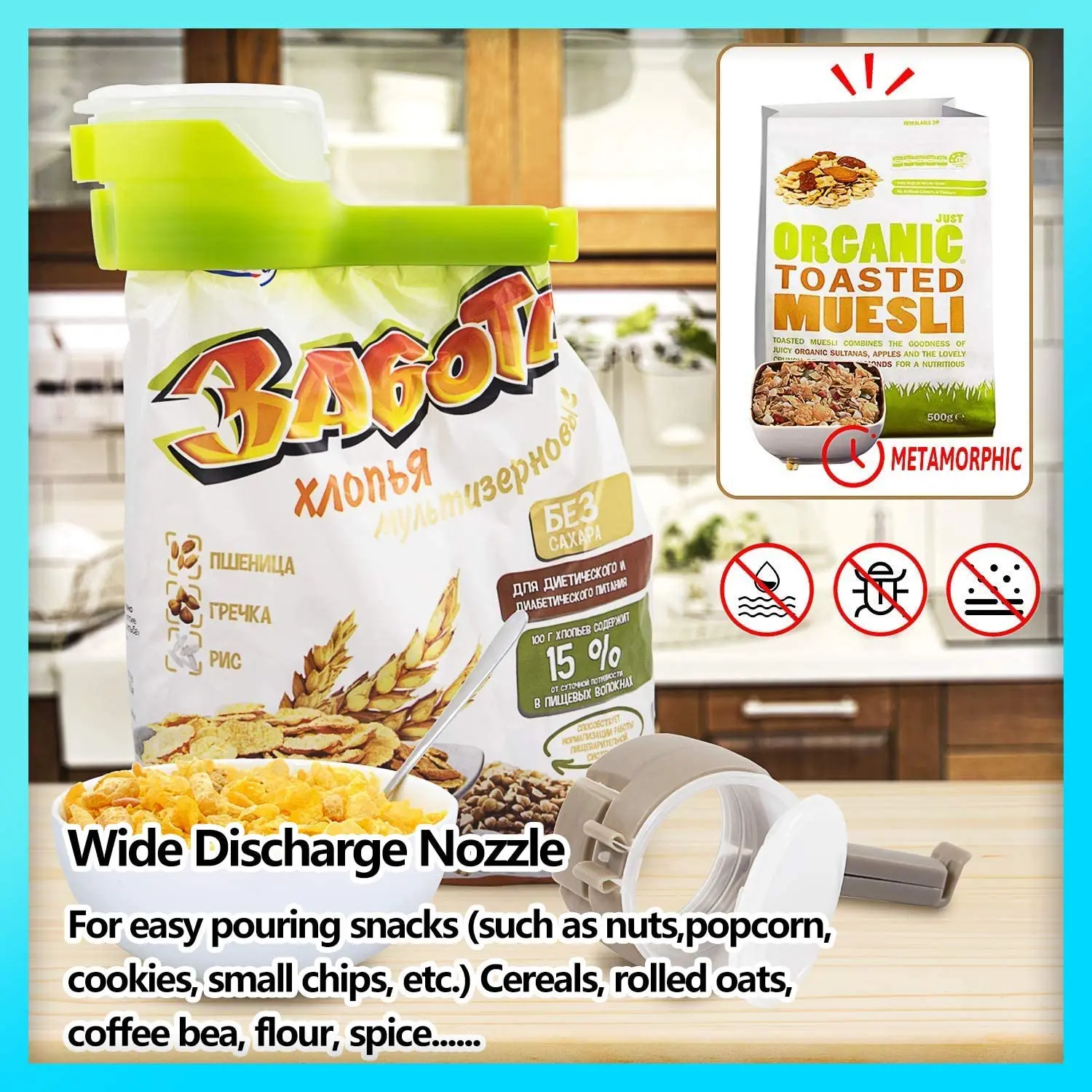 Ideal para bolsas de papas fritas, galletas, arroz, café, granos e incluso comida para mascotas. Un solo accesorio que resuelve varios problemas de almacenamiento.